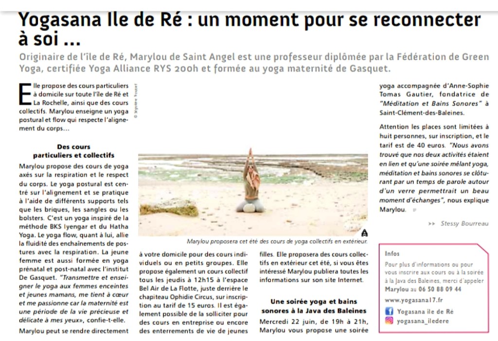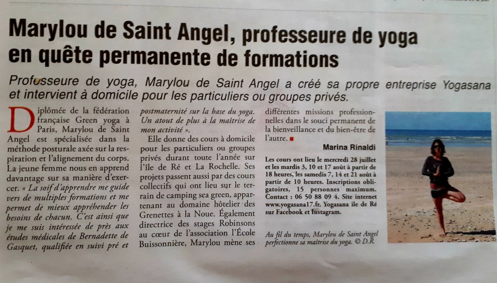 Vous êtes journaliste ? Si vous souhaitez en savoir plus, vous pouvez m’écrire par mail : yogasana17@gmail.com ou me téléphoner au 06 50 88 09 44 . Un grand merci!