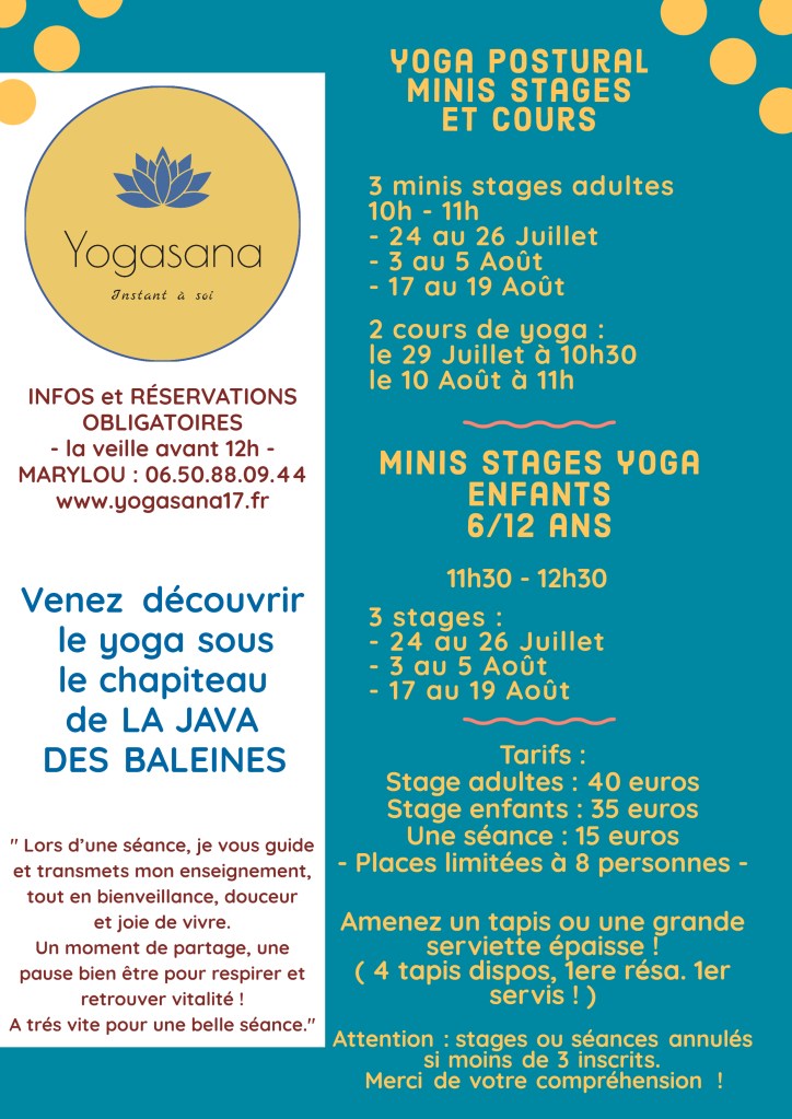 Cours et minis stages de yoga au chapiteau de la Java Des Baleines